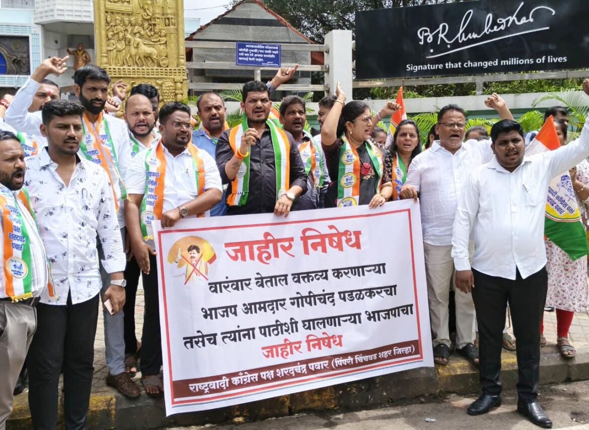 राष्ट्रवादी काँग्रेस पक्ष (शरदचंद्र पवार गट) पिंपरी-चिंचवड शहराच्या वतीने भाजप आमदार गोपीचंद पडळकर यांच्याविरोधात जोरदार निषेध आंदोलन करण्यात आले. पक्षाचे शहराध्यक्ष तुषार कामठे यांनी इशारा दिला आहे की, जर पडळकरांनी जयंत पाटील यांची तात्काळ माफी मागितली नाही, तर त्यांच्या तोंडाला काळे फासले जाईल.