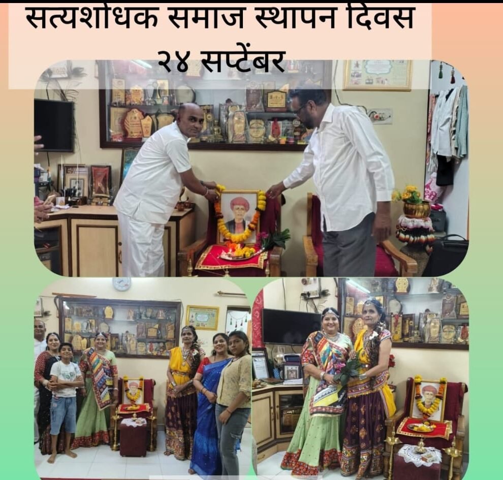 राष्ट्रपिता जोतीराव फुले यांनी स्थापन केलेल्या सत्यशोधक समाजाच्या स्थापनेला काल, २४ सप्टेंबर २०२५ रोजी १५२ वर्षे पूर्ण झाली. याच ऐतिहासिक दिवसाचे औचित्य साधून परतवाडा (अमरावती) येथे हा सत्यशोधक समाज स्थापना दिवस मोठ्या उत्साहात साजरा करण्यात आला. राष्ट्रीय उपाध्यक्षा सौ. शीला चर्जन (सावित्री शक्तीपीठ, पुणे) यांच्या निवासस्थानी हा प्रेरणादायी सोहळा पार पडला. सर्वप्रथम जोतीराव फुले यांच्या प्रतिमेला हारार्पण करून आणि पूजन करून या महान समाजसुधारकाला अभिवादन करण्यात आले.