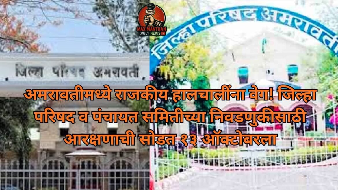 अमरावती जिल्ह्यातील जिल्हा परिषद (ZP) आणि पंचायत समिती (PS) यांच्या आगामी सार्वत्रिक निवडणुकीसाठी सदस्य आरक्षण निश्चिती (Reservation) आणि सोडतीचा (Lottery) कार्यक्रम राज्य निवडणूक आयोगाच्या निर्देशानुसार जाहीर करण्यात आला आहे. सोमवार, ऑक्टोबर पासून या कार्यक्रमाला सुरुवात होणार असून, संपूर्ण प्रक्रियेसाठी सविस्तर वेळापत्रक निश्चित करण्यात आले आहे.
