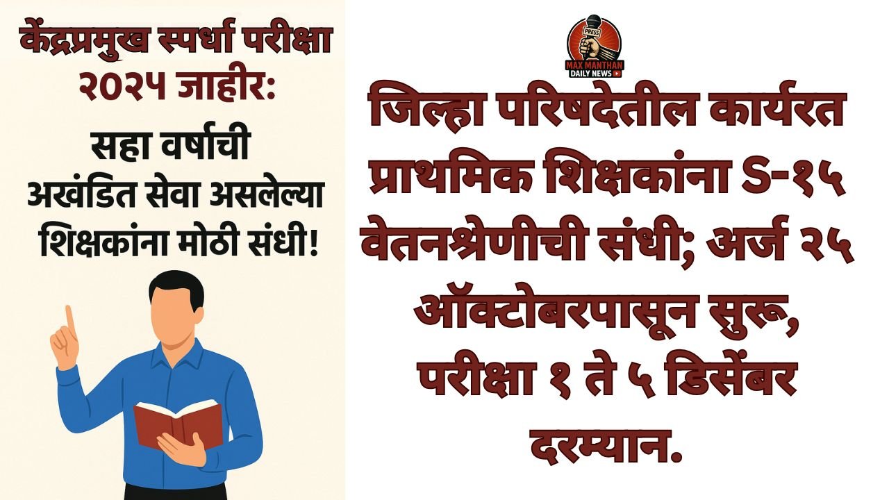 केंद्रप्रमुख स्पर्धा परीक्षा जाहीर: पदांसाठी अर्ज करण्याची अंतिम मुदत नोव्हेंबर!