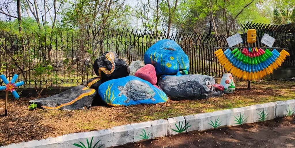या उपक्रमांतर्गत कचऱ्यातील टाकाऊ वस्तूंचा वापर करून परिसराचे उत्कृष्ट सौंदर्यीकरण करण्यात आले आहे. वापरात नसलेले पाईप, प्लास्टिकच्या बाटल्या, लाकूड, माठ, दगड आदी वस्तूंना कल्पकतेचा स्पर्श देत त्यापासून आकर्षक कलाकृती तयार करण्यात आल्या आहेत.