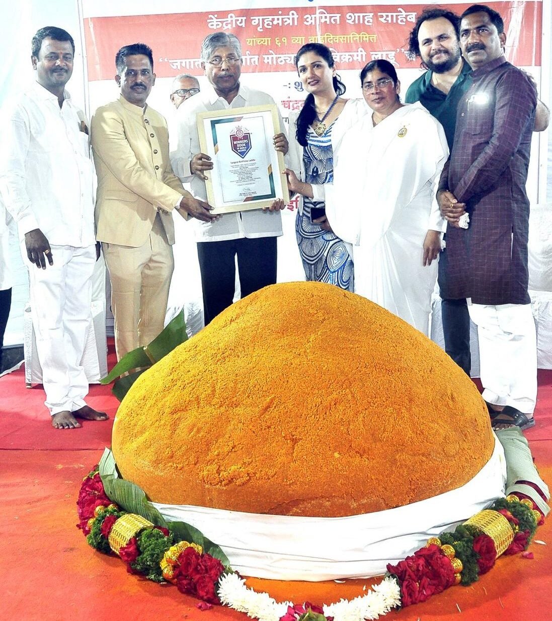 दिवाळी पाडवा आणि केंद्रीय गृहमंत्र्यांच्या वाढदिवसानिमित्त बाणेरमध्ये महाकाय लाडूची निर्मिती; ‘सर्वात मोठा वाढदिवसाचा लाडू’ म्हणून वर्ल्ड रेकॉर्डमध्ये नोंद