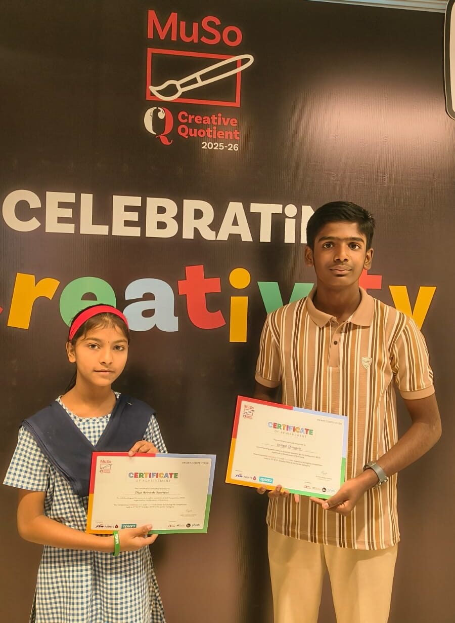 “क्रिएटिव्ह क्वोशंट आर्ट कॉम्पिटिशन” मध्ये दिव्या उपर्वट आणि वेदांत चौघुले यांचे यश; ‘पर्यावरण’ आणि ‘माझे स्वप्न’ विषयावर प्रभावी कलाकृती