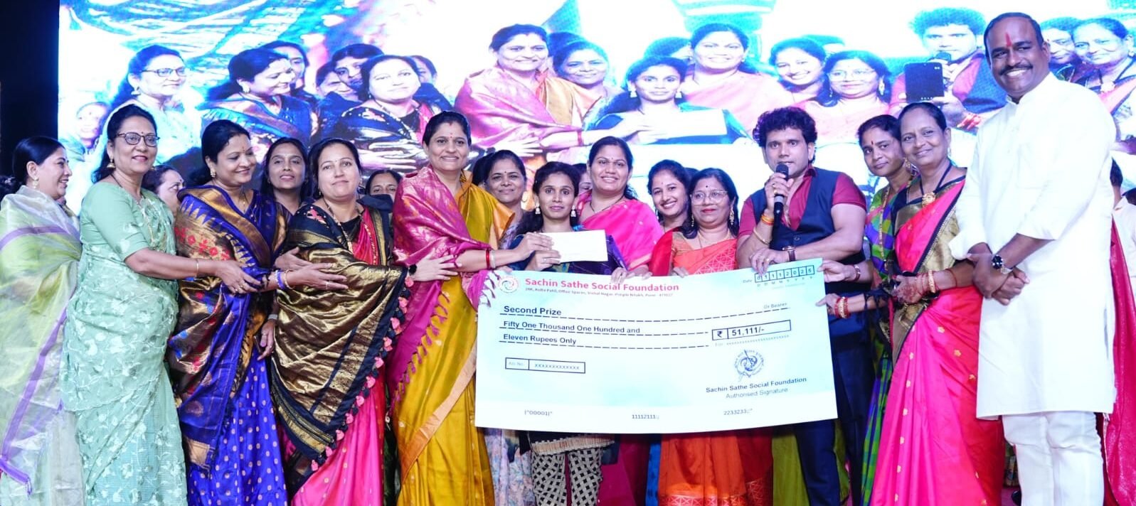 या व्यतिरिक्त अमृता संदीप हळदणकर, गजराबाई मुरलीधर काटे, किरण अरुण पाटील, सोनाली आशुतोष देसले आणि अमृता रामेश्वर दहे या पाच लकी ड्रॉ विजेत्यांना प्रत्येकी रोख ₹ ११,१११/- आणि आकर्षक साडी देऊन गौरविण्यात आले. तसेच, उपस्थित प्रत्येक महिला भगिनीला प्रोत्साहन देण्यासाठी आकर्षक साडी भेट देण्यात आली.