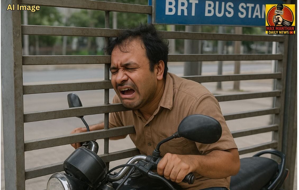 ‘विचित्र अपघात’ पिंपरी-चिंचवडमध्ये! बाईकस्वाराचे डोके BRT बस स्टँडच्या ग्रीलमध्ये अडकले