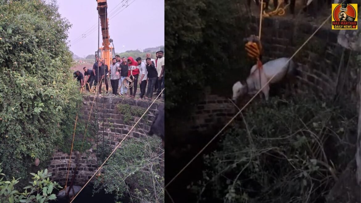 विहिरीत पडलेल्या बैलाला जीवदान! पिंपरी चिंचवड अग्निशमन दलाच्या जवानांचे चऱ्होली बुद्रुक येथे कौशल्यपूर्ण बचावकार्य.