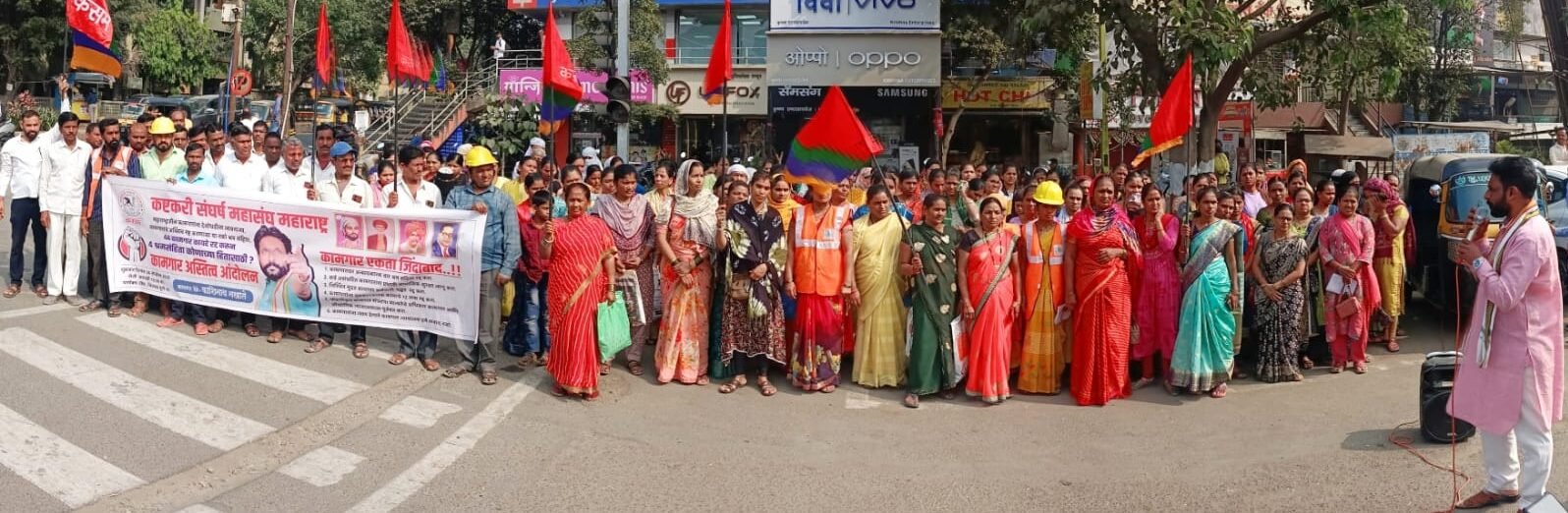 कामगारांवरील अन्यायकारक ४ श्रम संहिता त्वरित रद्द करा! चिंचवडमध्ये काशिनाथ नखाते यांच्या नेतृत्वात तीव्र आंदोलन