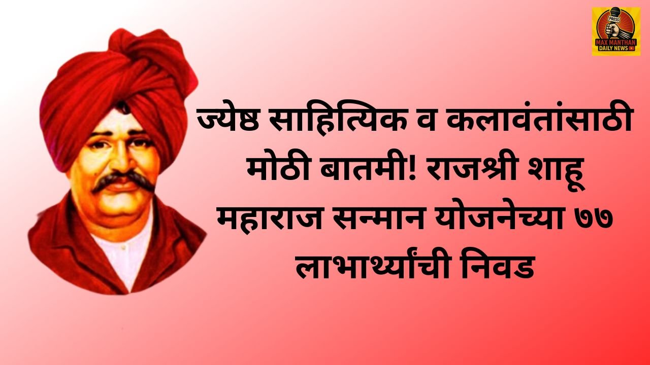 ज्येष्ठ साहित्यिक व कलावंतांसाठी मोठी बातमी! राजश्री शाहू महाराज सन्मान योजनेच्या ७७ लाभार्थ्यांची निवड