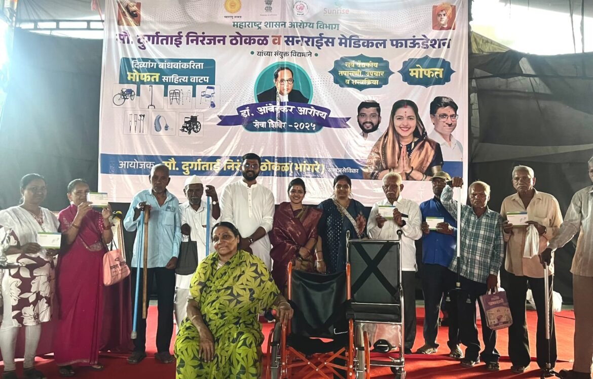 दापोडी परिसरातील सामाजिक कार्यकर्त्या सौ. दुर्गाताई निरंजन ठोकळ आणि सनराईस मेडिकल फाउंडेशन यांच्या वतीने आयोजित करण्यात आलेले डॉ. बाबासाहेब आंबेडकर महाआरोग्य सेवा शिबिर शनिवारी (दिनांक २९ नोव्हेंबर २०२५) प्रचंड उत्साहात व यशस्वीपणे पार पडले. या एकदिवसीय शिबिरात दापोडी परिसरातील ५ हजारांहून अधिक नागरिकांनी सहभाग नोंदवत विविध वैद्यकीय सुविधांचा लाभ घेतला.