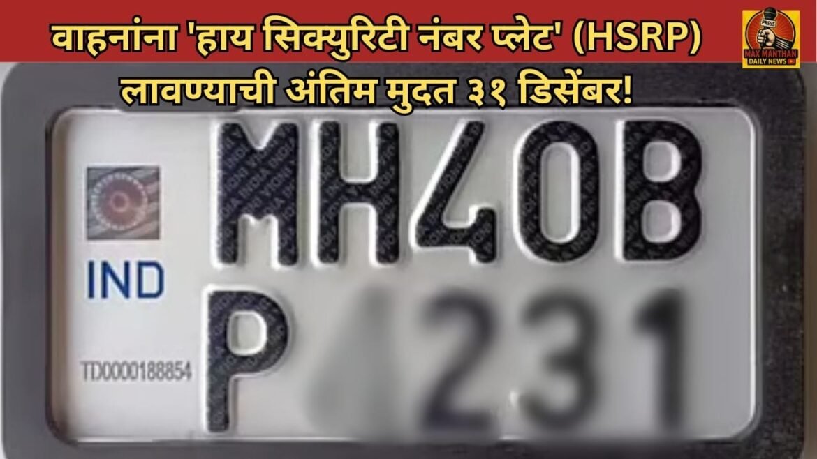 अंतिम मुदत: एचएसआरपी नंबर प्लेट बसवण्याची अंतिम मुदत ३१ डिसेंबर २०२५ ही आहे.