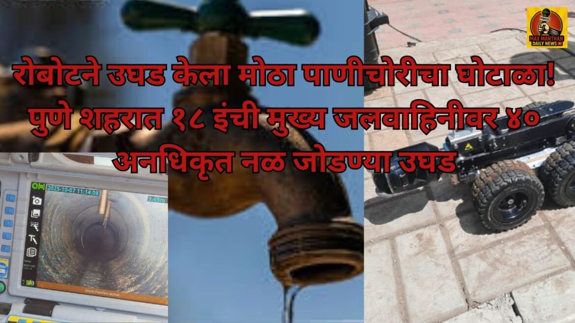 रोबोटने उघड केला मोठा पाणीचोरीचा घोटाळा! पुणे शहरात १८ इंची मुख्य जलवाहिनीवर ४० अनधिकृत नळजोडण्या उघड