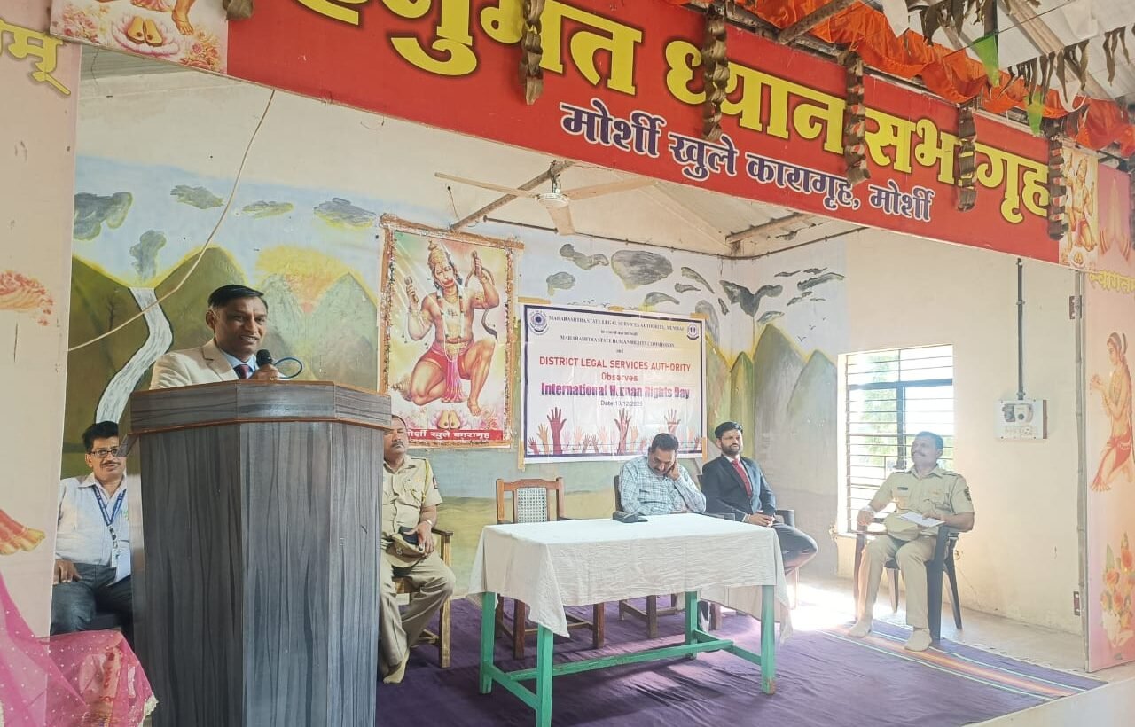 अमरावती जिल्ह्यातील मोर्शी येथील खुल्या कारागृहात बुधवार, दि. १० डिसेंबर २०२५ रोजी बंद्यांसाठी ‘मानवी हक्क आणि संरक्षण’ या विषयावर कायदेविषयक जागृती कार्यक्रम आयोजित करण्यात आला होता. आंतरराष्ट्रीय मानवी हक्क दिनाचे औचित्य साधून राज्य विधी सेवा प्राधिकरण, राज्य मानवी हक्क आयोग आणि कारागृह विभाग यांच्या वतीने हा उपक्रम घेण्यात आला.