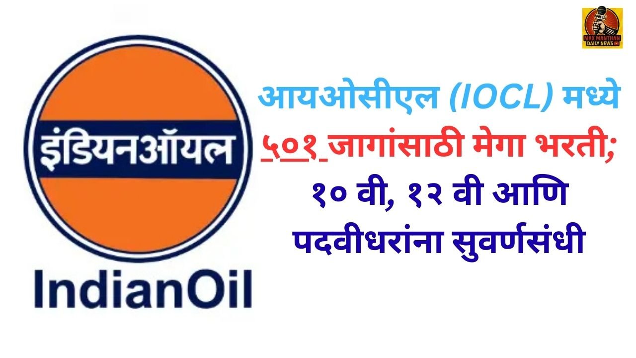 आयओसीएल (IOCL) मध्ये ५०१ जागांसाठी मेगा भरती; १० वी, १२ वी आणि पदवीधरांना सुवर्णसंधी