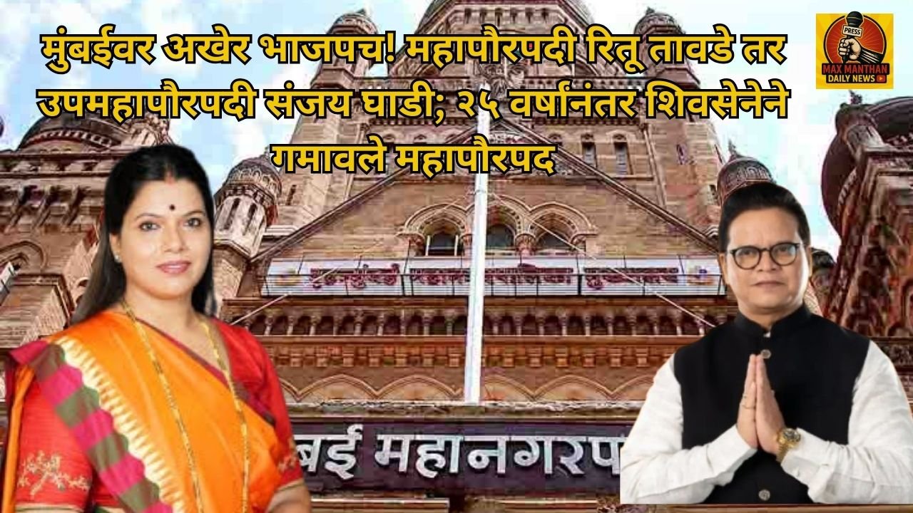 मुंबईवर अखेर भाजपचा भगवा! महापौरपदी रितू तावडे तर उपमहापौरपदी संजय घाडी; २५ वर्षांनंतर शिवसेनेने गमावले महापौरपद