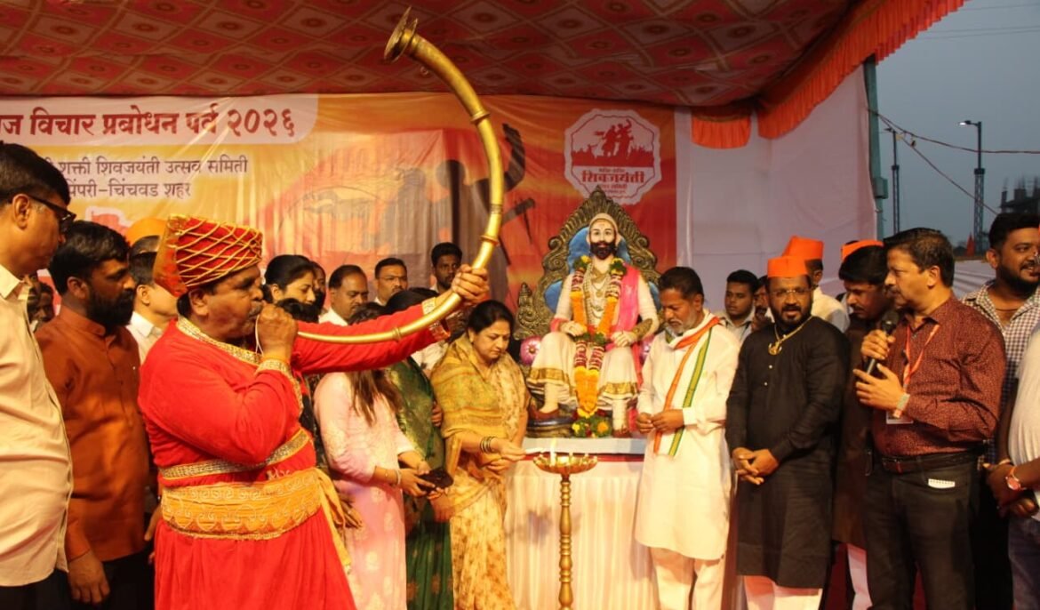 पिंपरी-चिंचवड : “छत्रपती शिवाजी महाराज की जय… जय भवानी, जय शिवाजी” अशा आसमंत भेदणाऱ्या जयघोषात आणि तुताऱ्यांच्या निनादात निगडी येथील भक्ती-शक्ती समूह शिल्प परिसर शिवमय झाला. पिंपरी-चिंचवड महानगरपालिकेच्या वतीने आयोजित ‘छत्रपती शिवाजी महाराज विचार प्रबोधन पर्व २०२६’ चा दिमाखदार शुभारंभ रविवारी ‘शिवशंभो गर्जना’ या कार्यक्रमाने झाला. १५ ते १९ फेब्रुवारी २०२६ या कालावधीत चालणाऱ्या या प्रबोधन पर्वातून शिवरायांचा देदीप्यमान इतिहास आणि क्रांतिकारी विचारांचा वारसा जनमानसात पोहचवला जात आहे.
