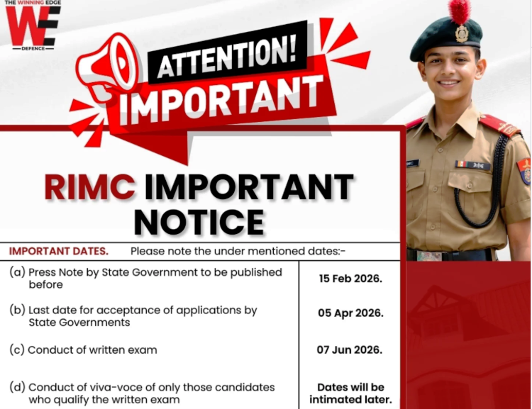 पुणे : भारतीय सैन्य दलात अधिकारी म्हणून करिअर घडवू इच्छिणाऱ्या महाराष्ट्रातील विद्यार्थ्यांसाठी महत्त्वाची बातमी आहे. डेहराडून येथील प्रतिष्ठित राष्ट्रीय भारतीय सैन्य महाविद्यालय (RIMC) मध्ये इयत्ता आठवीच्या प्रवेशासाठी ‘प्रवेश पात्रता परीक्षा’ जाहीर झाली आहे. ही परीक्षा ७ जून २०२६ रोजी पुणे येथे घेतली जाणार असून, यासाठी मुले आणि मुली दोघेही पात्र आहेत.