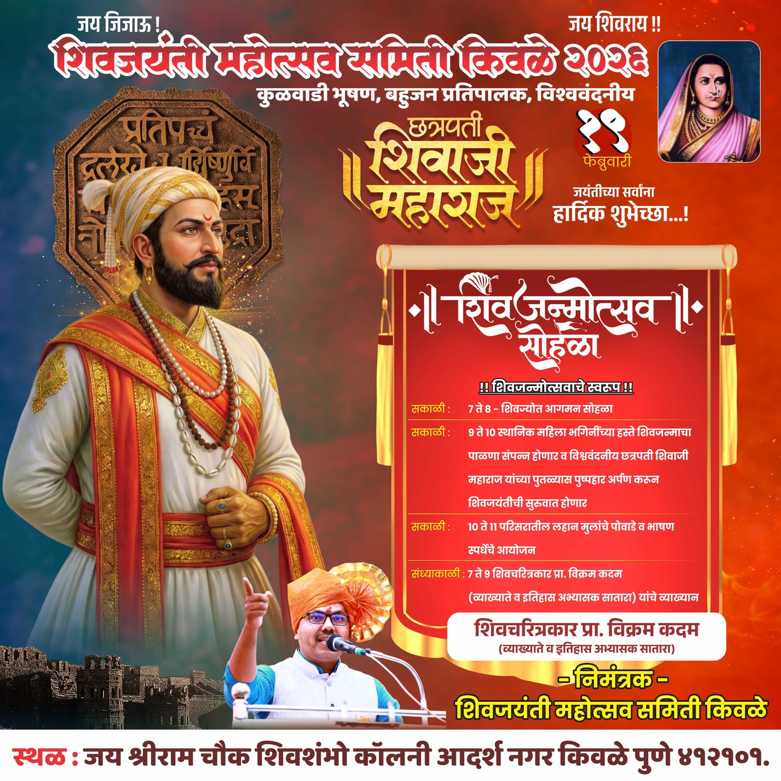 किवळेमध्ये शिवविचारांचा महासागर लोटणार! प्रा. विक्रम कदम यांचे व्याख्यान आणि पोवाड्यांच्या निनादात रंगणार शिवजन्मोत्सव सोहळा