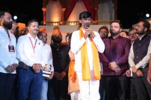 पिंपरी : “छत्रपती शिवाजी महाराज यांनी स्वराज्य उभे करताना न्याय, समता आणि कष्टकऱ्यांच्या हिताला केंद्रस्थानी ठेवले होते. ‘शिवगर्जना’ महानाट्यातून हाच इतिहास आजच्या तरुणांसमोर प्रभावीपणे येत आहे. युवकांमध्ये राष्ट्राभिमान जागवण्याबरोबरच समाजासाठी काहीतरी करण्याची जाणीव निर्माण करण्याची ताकद या सादरीकरणात आहे,” असे प्रतिपादन थोर सामाजिक कार्यकर्ते मनोज जरांगे पाटील यांनी केले.