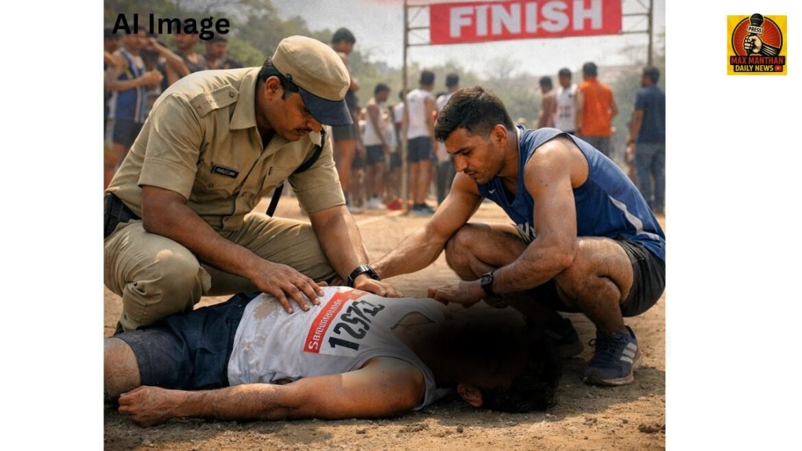 धावताना कोसळला: तीन फेऱ्या यशस्वीपणे पूर्ण केल्यानंतर, शेवटची फिनिशिंग लाईन गाठण्यासाठी अवघ्या काही अंतरावर असताना संग्राम अचानक मैदानावर कोसळला.