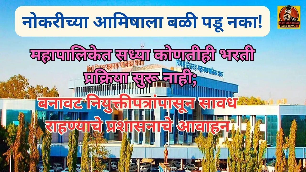 प्रशासन विभागाकडे प्राप्त झालेल्या तक्रारींनुसार, काही टोळ्या महापालिकेच्या नावाचा आणि लोगोचा गैरवापर करून बनावट नियुक्तीपत्रे प्रसिद्ध करत आहेत. या बदल्यात तरुणांकडून पैसे उकळण्याचे प्रकार घडण्याची शक्यता नाकारता येत नाही. महापालिकेने अद्याप भरतीबाबत कोणताही अधिकृत आदेश किंवा जाहिरात प्रसिद्ध केलेली नसल्याचे प्रशासनाने स्पष्ट केले आहे.