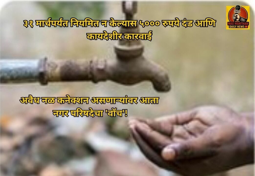 अवैध नळ कनेक्शन असणाऱ्यांवर आता नगर परिषदेचा ‘वॉच’! ३१ मार्चपर्यंत नियमित न केल्यास ५००० रुपये दंड आणि कायदेशीर कारवाई