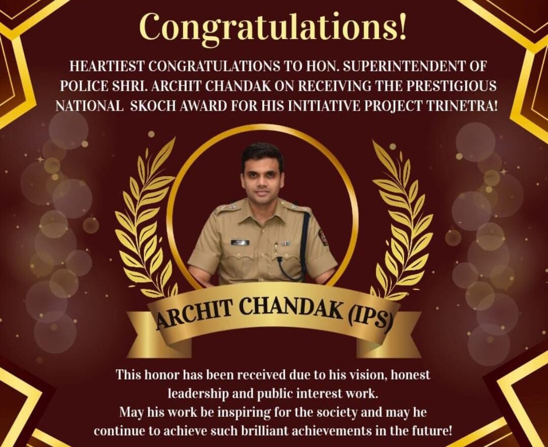 अकोला : पोलीस दलातील कार्यक्षमता वाढवण्यासाठी आणि गुन्हेगारीवर वचक बसवण्यासाठी आधुनिक तंत्रज्ञानाचा कल्पक वापर करणारे अकोल्याचे पोलीस अधीक्षक श्री. अर्जित चांडक (IPS) यांच्या शिरपेचात मानाचा तुरा रोवला गेला आहे. त्यांच्या ‘प्रोजेक्ट त्रिनेत्र’ (Project Trinetra) या महत्त्वाकांक्षी उपक्रमाला राष्ट्रीय स्तरावरील प्रतिष्ठित ‘स्कॉच अवॉर्ड’ (National SKOCH Award) प्रदान करण्यात आला आहे.