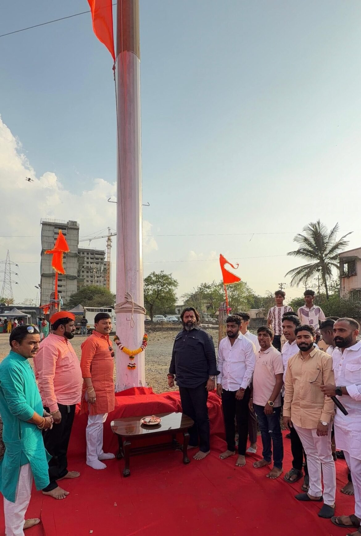 कृष्णानगरात भक्ती आणि शक्तीचा संगम! आमदार महेश लांडगे यांच्या हस्ते ५१ फुटी भव्य भगव्या ध्वजाचे राष्ट्रार्पण; चिखली परिसर झाला ‘राममय’