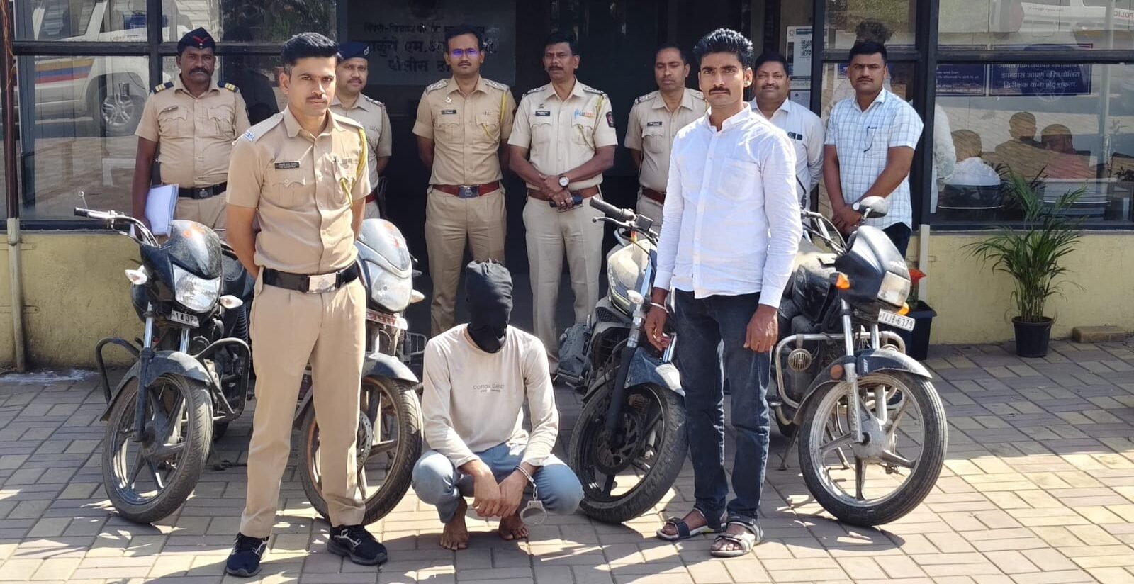 महाळुंगे पोलिसांची धडाकेबाज कारवाई! सराईत वाहन चोरटा अटकेत; ४ दुचाकींसह घरफोडीचा गुन्हा उघड, १.५० लाखांचा मुद्देमाल जप्त