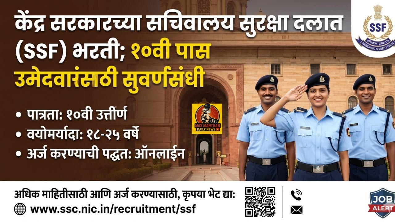 केंद्र सरकारच्या सचिवालय सुरक्षा दलात (SSF) भरती; १०वी पास उमेदवारांसाठी सुवर्णसंधी