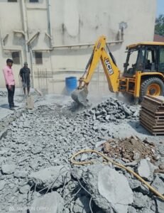 यंत्रसामग्री: १ जेसीबी ब्रेकर, १ ट्रॅक्टर ब्रेकर आणि ४ हातोडे.
