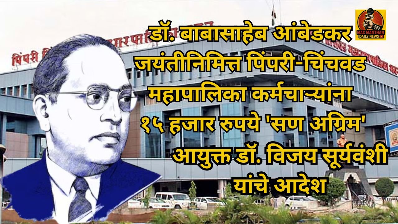 पिंपरी: भारतरत्न डॉ. बाबासाहेब आंबेडकर जयंतीचे औचित्य साधून पिंपरी चिंचवड महानगरपालिकेने आपल्या अधिकारी व कर्मचाऱ्यांसाठी आनंदाची बातमी दिली आहे. या जयंती उत्सवासाठी महापालिका आस्थापनेवरील पात्र कर्मचाऱ्यांना १५ हजार रुपये ‘सण अग्रिम’ (Festival Advance) देण्याचा निर्णय घेण्यात आला असून, याबाबतचे अधिकृत आदेश आयुक्त डॉ. विजय सूर्यवंशी यांनी जारी केले आहेत.