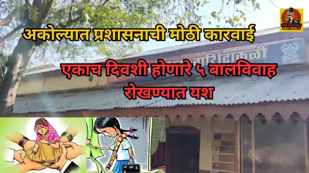अकोला: जिल्ह्यात बालविवाहाच्या अनिष्ट प्रथेविरोधात प्रशासनाने मोठी मोहीम उघडली असून, एकाच दिवशी होणारे पाच बालविवाह रोखून पाच बालकांचे भविष्य अंधकारात जाण्यापासून वाचवले आहे. यामध्ये बार्शीटाकळी तालुक्यातील एकाच कुटुंबातील दोन बहिणी व दोन भाऊ, तसेच अकोला तालुक्यातील एका बालिकेचा समावेश आहे. या कारवाईमुळे संपूर्ण जिल्ह्यात खळबळ उडाली आहे.