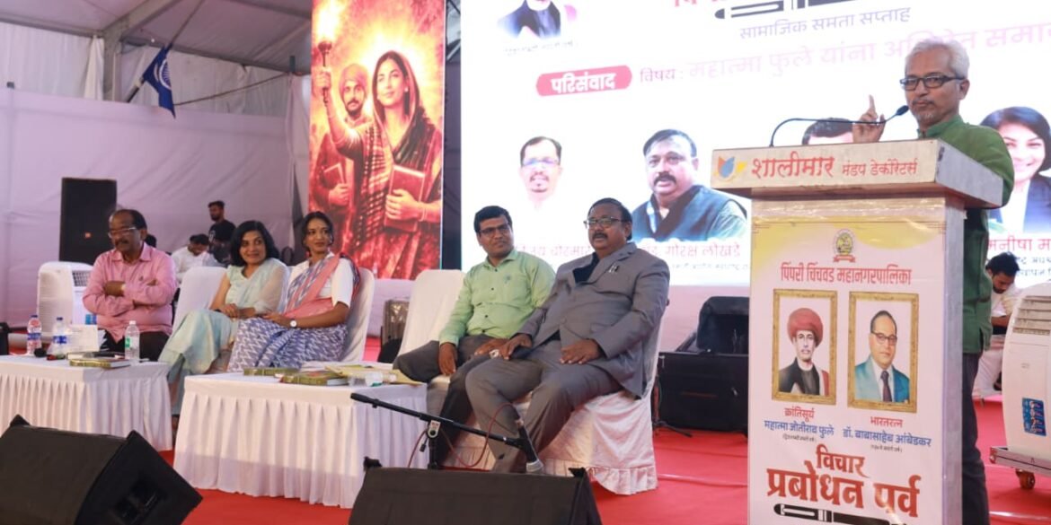पिंपरी चिंचवड महानगरपालिकेच्या वतीने आयोजित ‘सामाजिक समता सप्ताह व विचार प्रबोधन पर्व २०२६’ अंतर्गत ‘महात्मा फुले यांना अभिप्रेत समाजव्यवस्था’ या विषयावर विशेष परिसंवादाचे आयोजन करण्यात आले होते. याप्रसंगी ज्येष्ठ पत्रकार विजय चोरमारे, ॲड. गोरक्ष लोखंडे, ॲड. मनीषा महाजन, संविधान अभ्यासक नुरखा पठाण आणि सर्वोच्च न्यायालयातील ॲड. दिशा वाडेकर यांनी आपले विचार मांडले.
