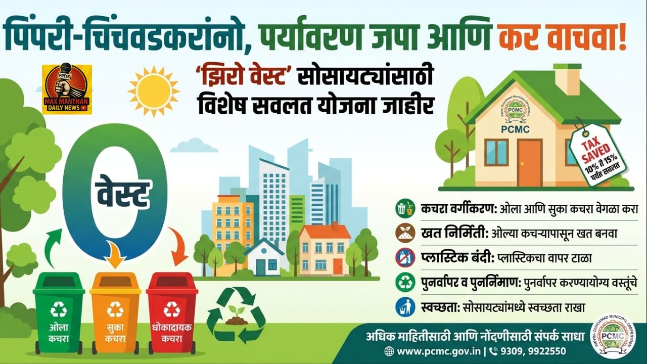 पिंपरी: पिंपरी चिंचवड महानगरपालिकेने पर्यावरणपूरक उपक्रमांना चालना देण्यासाठी एक महत्त्वपूर्ण पाऊल उचलले आहे. शहरातील ज्या गृहनिर्माण संस्था किंवा इमारती कचरा व्यवस्थापन, सांडपाणी प्रक्रिया आणि ‘झिरो वेस्ट’ संकल्पना प्रभावीपणे राबवतील, त्यांना सामान्य करात (General Tax) थेट सवलत देण्याचा निर्णय महापालिकेने घेतला आहे.