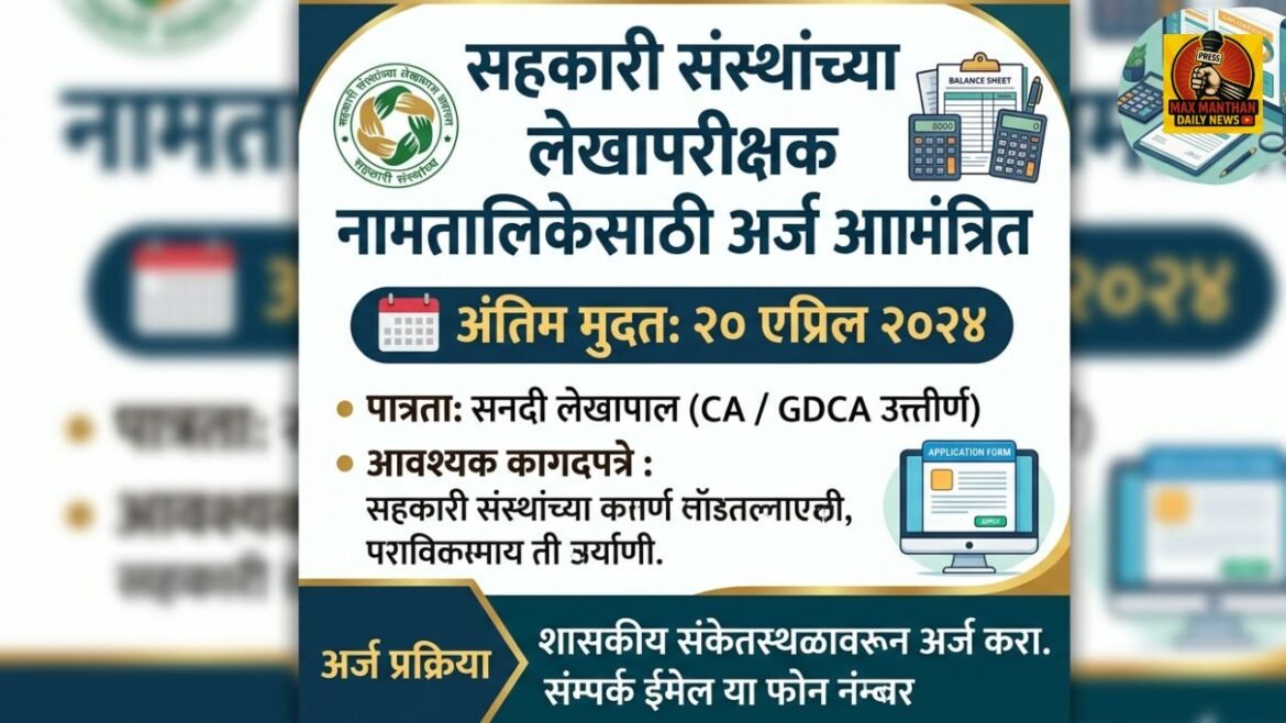 सहकारी संस्थांच्या लेखापरीक्षक नामतालिकेसाठी अर्ज आमंत्रित; २० एप्रिल ही अंतिम मुदत