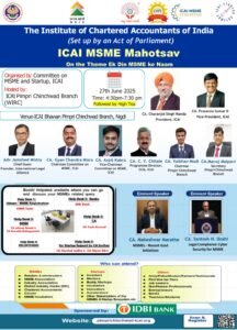पिंपरी, दि. २४ जून २०२५ (मॅक्स मंथन डेली न्यूज): पिंपरी-चिंचवडमधील उद्योजकांसाठी एक महत्त्वपूर्ण संधी चालून आली आहे! निगडी येथील इन्स्टिट्यूट ऑफ चार्टर्ड अकाउंटंट्स ऑफ इंडिया (ICAI) यांच्या वतीने उद्योजकांसाठी “एक दिन एमएसएमई के नाम” या विशेष कार्यक्रमाचे आयोजन करण्यात आले आहे. ही माहिती आयसीएआयचे अध्यक्ष सीए वैभव मोदी यांनी दिली.