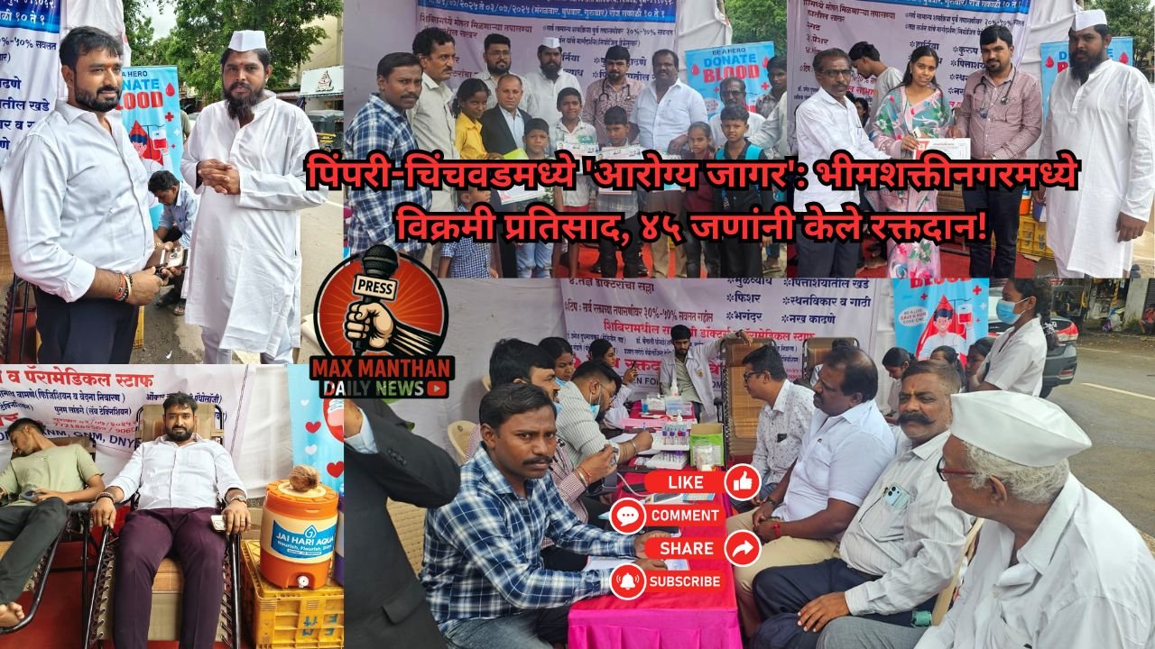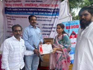 पिंपरी-चिंचवड, दि. ४ जुलै २०२५: भीमशक्तीनगर, म्हेत्रेवाडी, चिखली येथे जय बजरंग तरुण मित्र मंडळ ट्रस्ट आणि तिरुमला फाउंडेशन यांच्या संयुक्त विद्यमाने आयोजित करण्यात आलेल्या तीन दिवसीय आरोग्य आणि रक्तदान शिबिराला नागरिकांचा उत्स्फूर्त प्रतिसाद मिळाला. या समाजोपयोगी उपक्रमात २५३ नागरिकांनी आरोग्य तपासणी आणि शस्त्रक्रिया तपासणीचा लाभ घेतला, तर ‘रक्तदान हेच श्रेष्ठदान’ या उदात्त संदेशाला प्रतिसाद देत ४५ दानशूर व्यक्तींनी रक्तदान केले. यासोबतच, तिरुमला फाउंडेशनच्या वतीने गुणवंत विद्यार्थ्यांचा सत्कार करण्यात आला आणि गरजू विद्यार्थ्यांना वह्या-पुस्तकांचे वाटपही करण्यात आले.