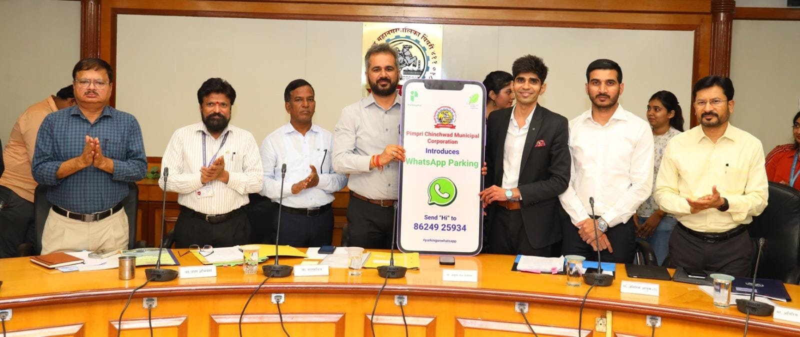 स्थायी समिती बैठकीतच पिंपरी-चिंचवड महापालिकेने सुरू केलेल्या ‘पे अॅण्ड पार्क’ उपक्रमांतर्गत नागरिकांना अधिक सुलभ पद्धतीने पार्किंग बुक करता यावे, यासाठी खास ‘व्हॉट्सॲप पार्किंग’ या डिजिटल सेवेचे उद्घाटन आयुक्त शेखर सिंह यांच्या हस्ते करण्यात आले.
