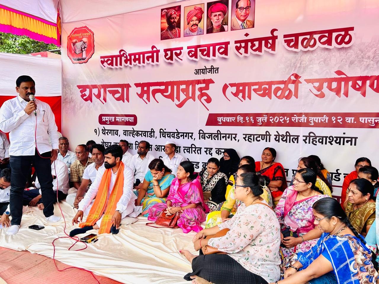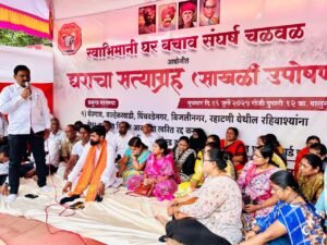पिंपरी-चिंचवड, दि. १९ जुलै २०२५: थेरगाव, वाल्हेकरवाडी, चिंचवडे नगर आणि रहाटणी परिसरातील हजारो गरीब व मध्यमवर्गीय नागरिकांना बेघर करणाऱ्या प्रस्तावित डीपी रस्त्याविरोधात **’स्वाभिमानी घर बचाव संघर्ष चळवळ’**ने एल्गार पुकारला आहे! घराचा सत्याग्रह आणि साखळी उपोषण सुरू असून, आज (चौथा दिवस) हा लढा अधिक तीव्र झाला आहे. धनाजी येळकर पाटील यांच्या नेतृत्वाखाली स्थानिक नागरिकांचा आवाज बुलंद होत असून, स्थानिक आमदारांवर त्यांनी गंभीर आरोप केले आहेत.