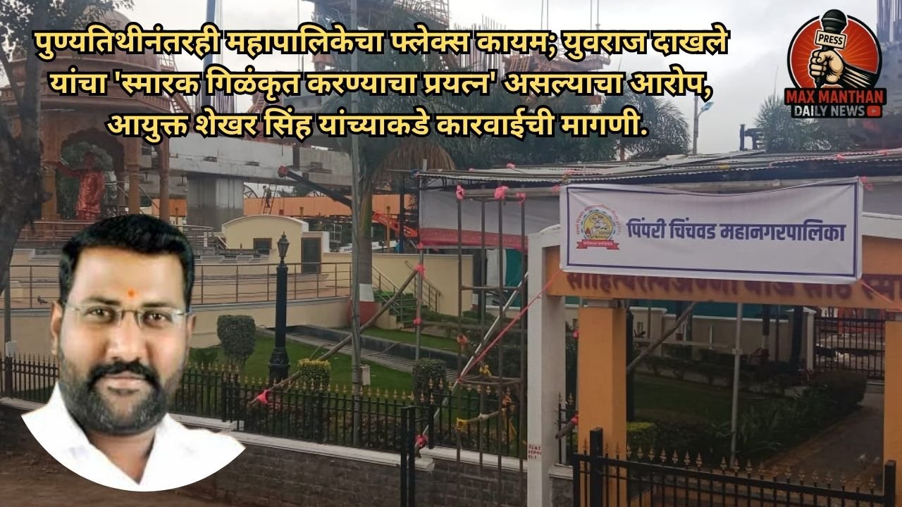 पिंपरी-चिंचवड, दि. २१ जुलै २०२५: साहित्यरत्न लोकशाहीर डॉ. अण्णा भाऊ साठे यांच्या १८ जुलै रोजी निगडी येथील पूर्णाकृती स्मारकावर महानगरपालिकेच्या प्रशासनाने आयोजित केलेल्या पुण्यतिथी कार्यक्रमावरून नवा वाद निर्माण झाला आहे. पुण्यतिथी साजरी करताना महानगरपालिकेने स्मारकाच्या प्रवेशद्वारावर आपल्या नावाचा फ्लेक्स लावला होता, परंतु आज २१ जुलै २०२५ उलटूनही तो फ्लेक्स काढण्यात आलेला नाही. यामुळे महानगरपालिकेच्या भूमिकेवर प्रश्नचिन्ह निर्माण झाले असून, कार्यकर्त्यांमध्ये तीव्र संताप व्यक्त होत आहे.