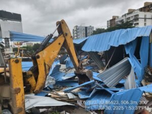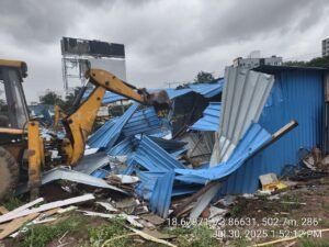 पिंपरी, दि. ३० जुलै २०२५ , मॅक्स मंथन डेली न्यूज : पिंपरी चिंचवड शहरात अनधिकृत बांधकामे आणि विनापरवाना व्यावसायिक पत्राशेड्सचा वाढता धोका लक्षात घेता, पिंपरी चिंचवड महानगरपालिकेने आज मोशी परिसरात मोठी निष्कासन कारवाई केली. इ क्षेत्रीय कार्यालयाच्या अंतर्गत येणाऱ्या प्रभाग क्र. ३ मोशी येथील गट क्र. २५०, ऑस्ट्रिया इमारत जवळ, देहू-आळंदी रस्ता येथील अंदाजे १८०५१ चौरस फूट क्षेत्रफळावरील १६ अनधिकृत बांधकामे जमीनदोस्त करण्यात आली. या कारवाईमध्ये अनधिकृत पत्राशेड्स आणि इतर बांधकामांचा समावेश होता, ज्यामुळे शहराच्या नियोजनबद्ध विकासाला खीळ बसत होती.
