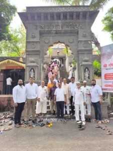 या मंगलमय प्रसंगाला माजी नगरसेवक बाबासाहेब त्रिभुवन, माजी नगरसेविका सविता खुळे, नरेश खुळे मा.नगरसेवक कैलास भाऊ थोपटे, आदेश अप्पा राजवडे, अजय कदम, किरण खुळे, संदीप गोडांबे, महादेव कोकणे, सुरेश कदम, दौलत कोकणे, रामभाऊ काळभोर, सुदाम भाऊ कापसे, जिजाबा गोडांबे, बाळासाहेब नढे, अनिल गोडांबे यांच्यासह गावातील अनेक ज्येष्ठ मान्यवर, स्थानिक नागरिक आणि मोठ्या संख्येने भाविक उपस्थित होते. पारंपरिक पद्धतीने सर्व धार्मिक विधी पार पाडण्यात आले, ज्यामुळे संपूर्ण मंदिर परिसर भक्तिमय आणि सकारात्मक ऊर्जेने भारलेला होता.
