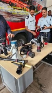 - आधुनिक नोजल्सचा वापर: विविध प्रकारच्या आगींवर नियंत्रण मिळवण्यासाठी ‘सिलेक्टेबल गॅलॉन नोझल्स’, ‘मल्टिपर्पज नोझल्स’ आणि ‘पिअरसिंग ॲप्लिकेशन नोझल्स’ यांचा उपयोग कसा करावा, याचे प्रात्यक्षिक प्रशिक्षण देण्यात आले.