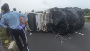 मूर्तीजापूर,प्रतिनिधी : विलास सावळे – मूर्तीजापूर तालुक्यातील राष्ट्रीय महामार्ग क्रमांक ५३ वर आज दुपारी दोन ते अडीच वाजण्याच्या सुमारास एका भरधाव वेगात असलेल्या आयशर ट्रकचा भीषण अपघात झाला. पैलपाडा येथील पेट्रोल पंपाजवळ हा अपघात झाला असून, ट्रक अचानक टायर फुटल्याने रस्त्याच्या कडेला पलटी झाला.